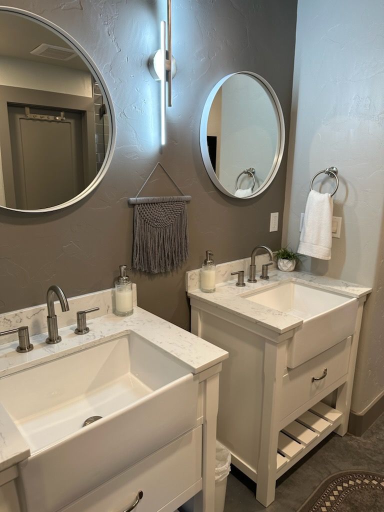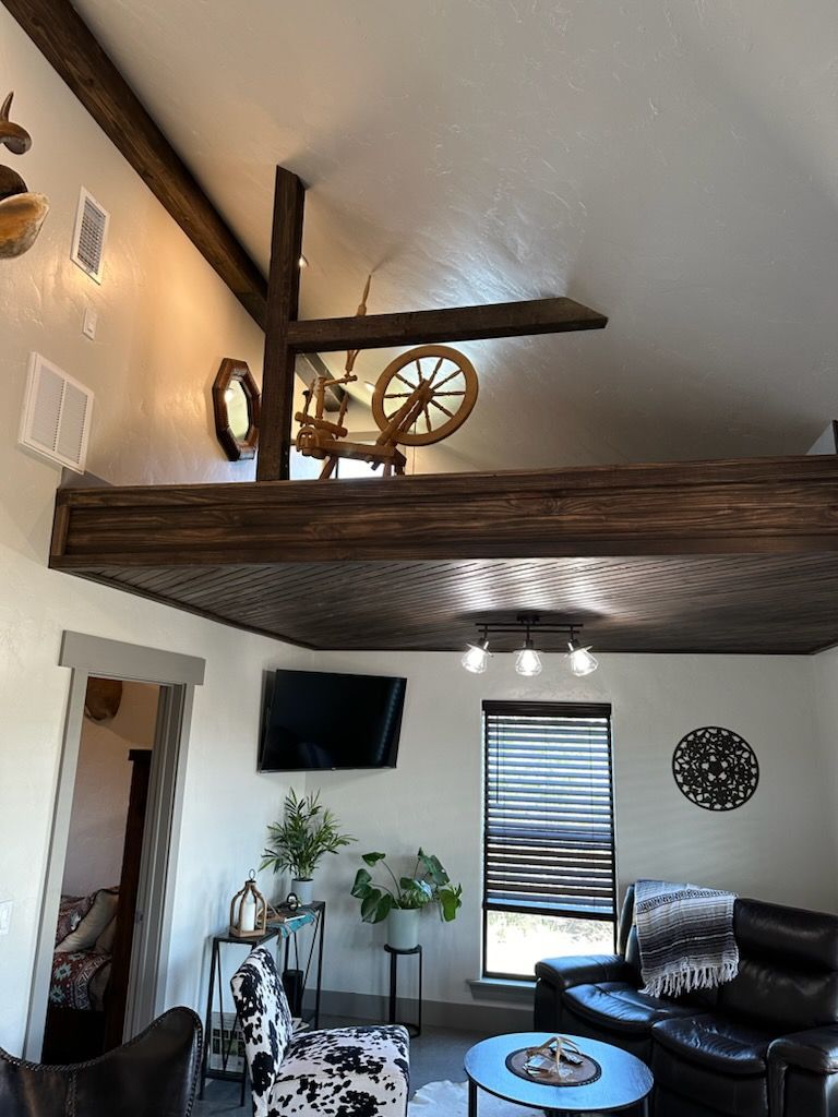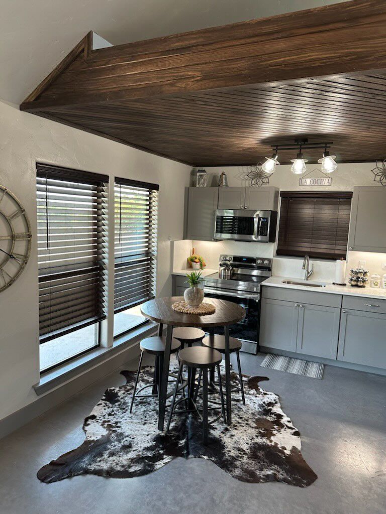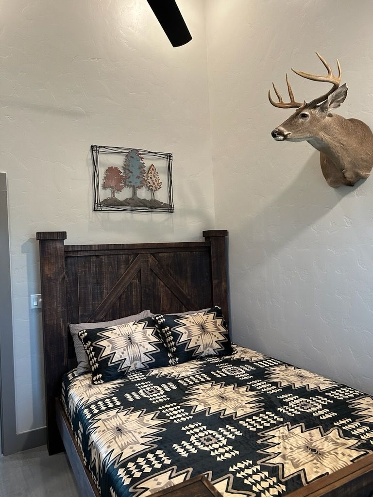 There is a full-size kitchen for preparing meals. Pots and pans, as well as dishes, silverware and glassware are provided. Paper products available too! Great time for friends to visit and enjoy their time together in this quiet countryside. We have 2 bedrooms available each with a queen bed. There is a Jack & Jill bath between the bedrooms with a shower.